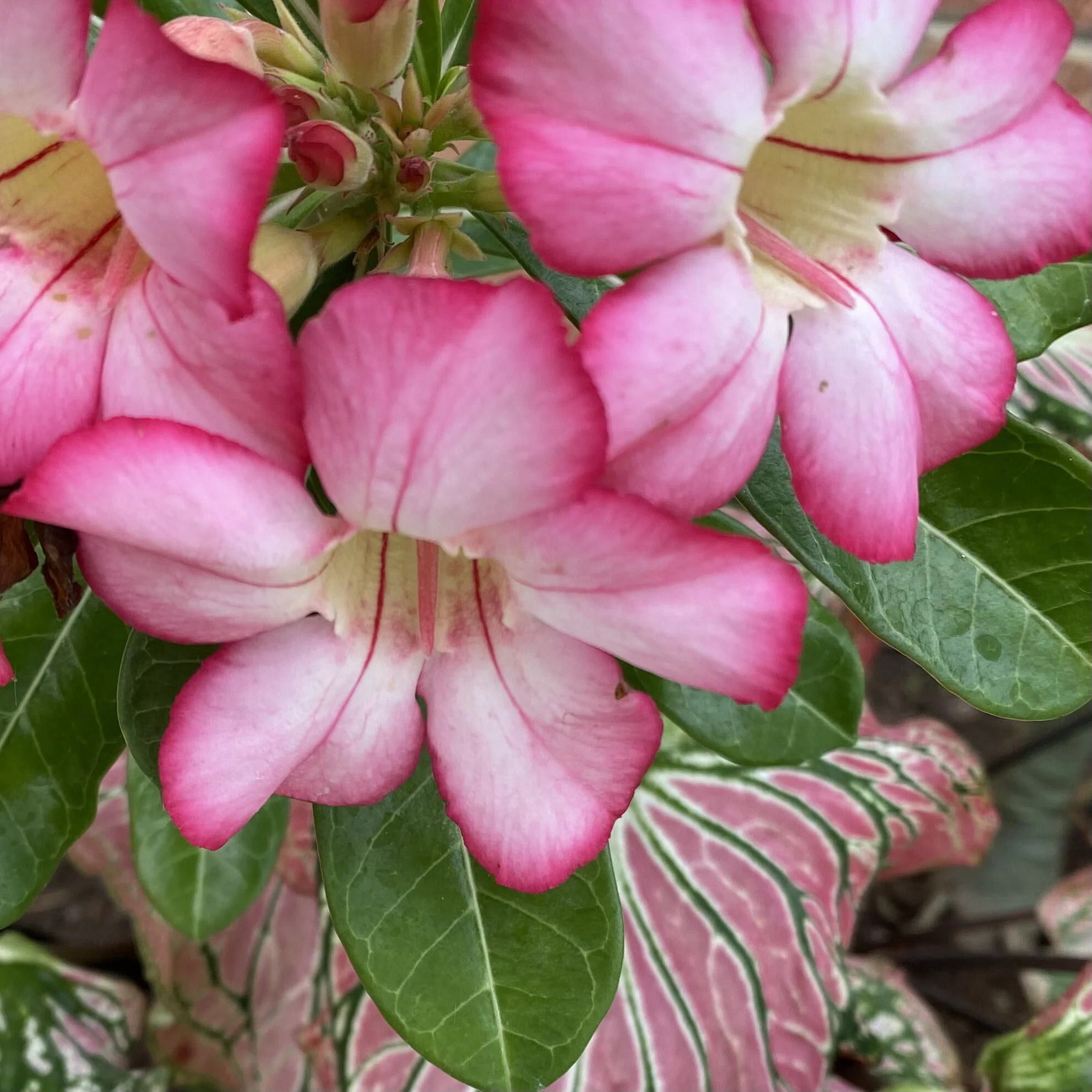 Bright pink flowers against green foliage…..