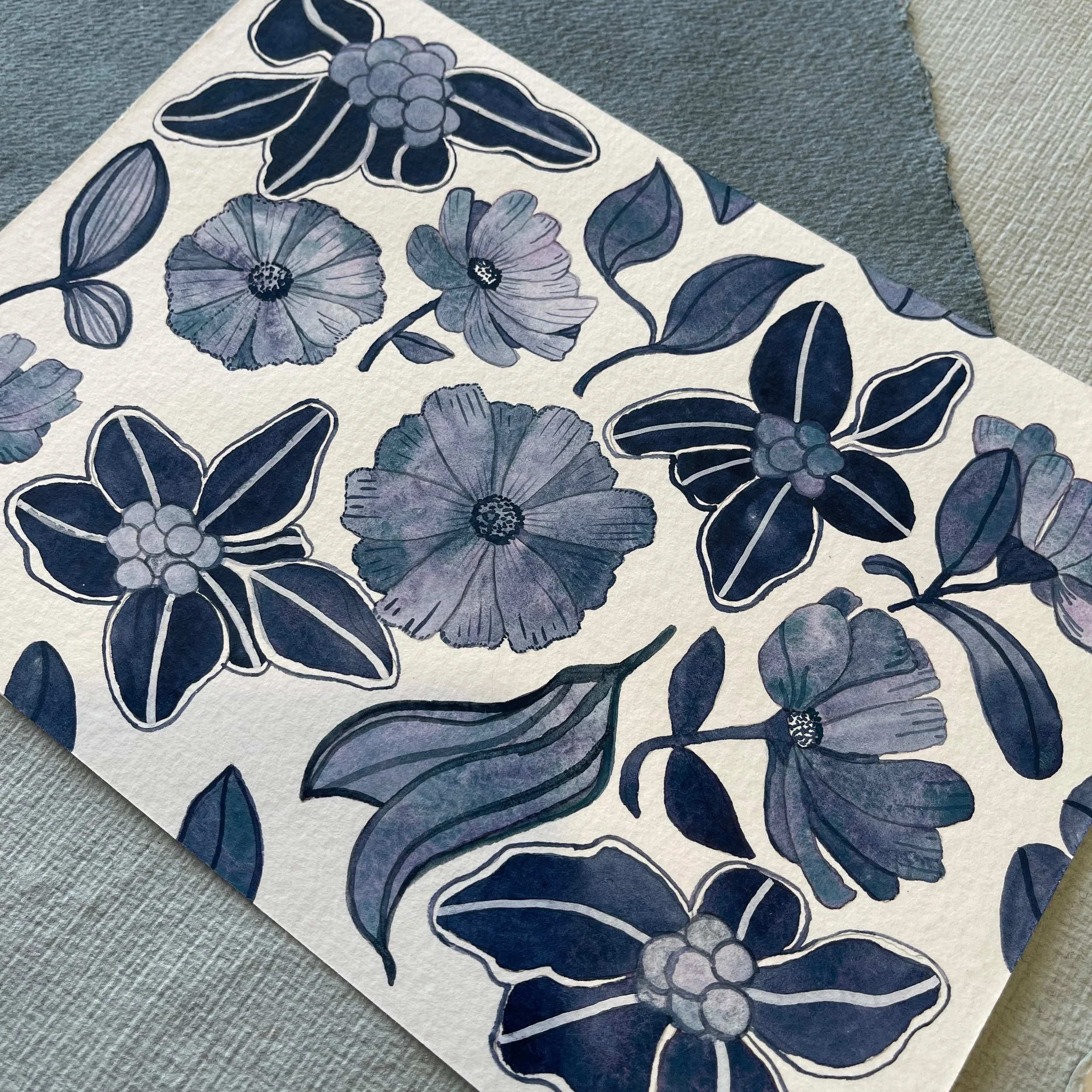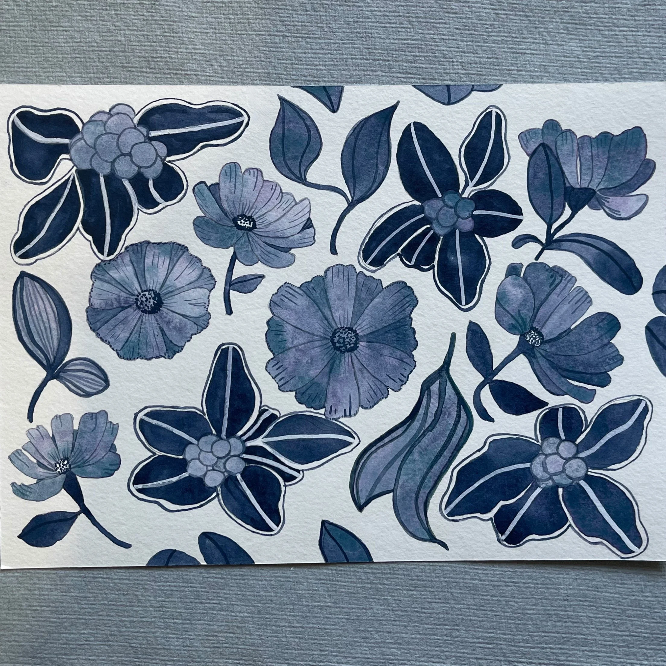 I am still making small paintings at the moment, using just blue and white to express botanical details. Watercolour on paper, 15 x 21cm.