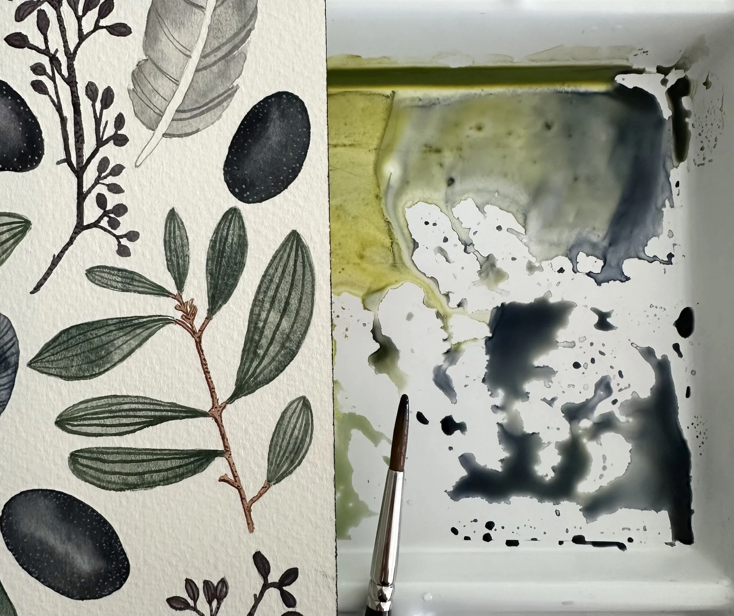 Working on a new series of works. Based on Natural History and found natural objects. Watercolour on paper.