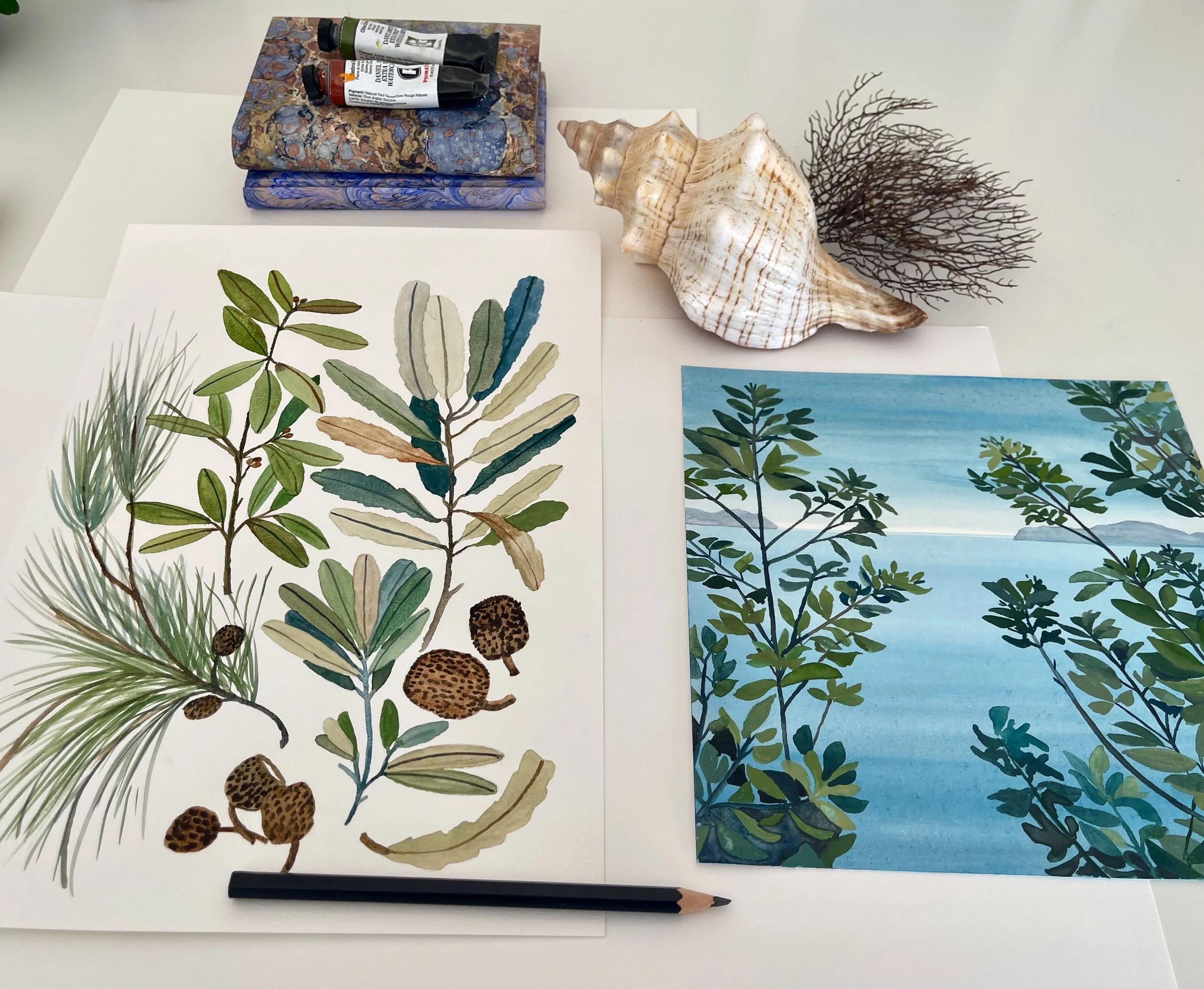 I am a visual artist based in Australia, working with drawing materials, watercolour, and mixed media. My practice is rooted in close observation of the natural world focusing on the quiet, often overlooked details of foliage, growth, and organic patterns.